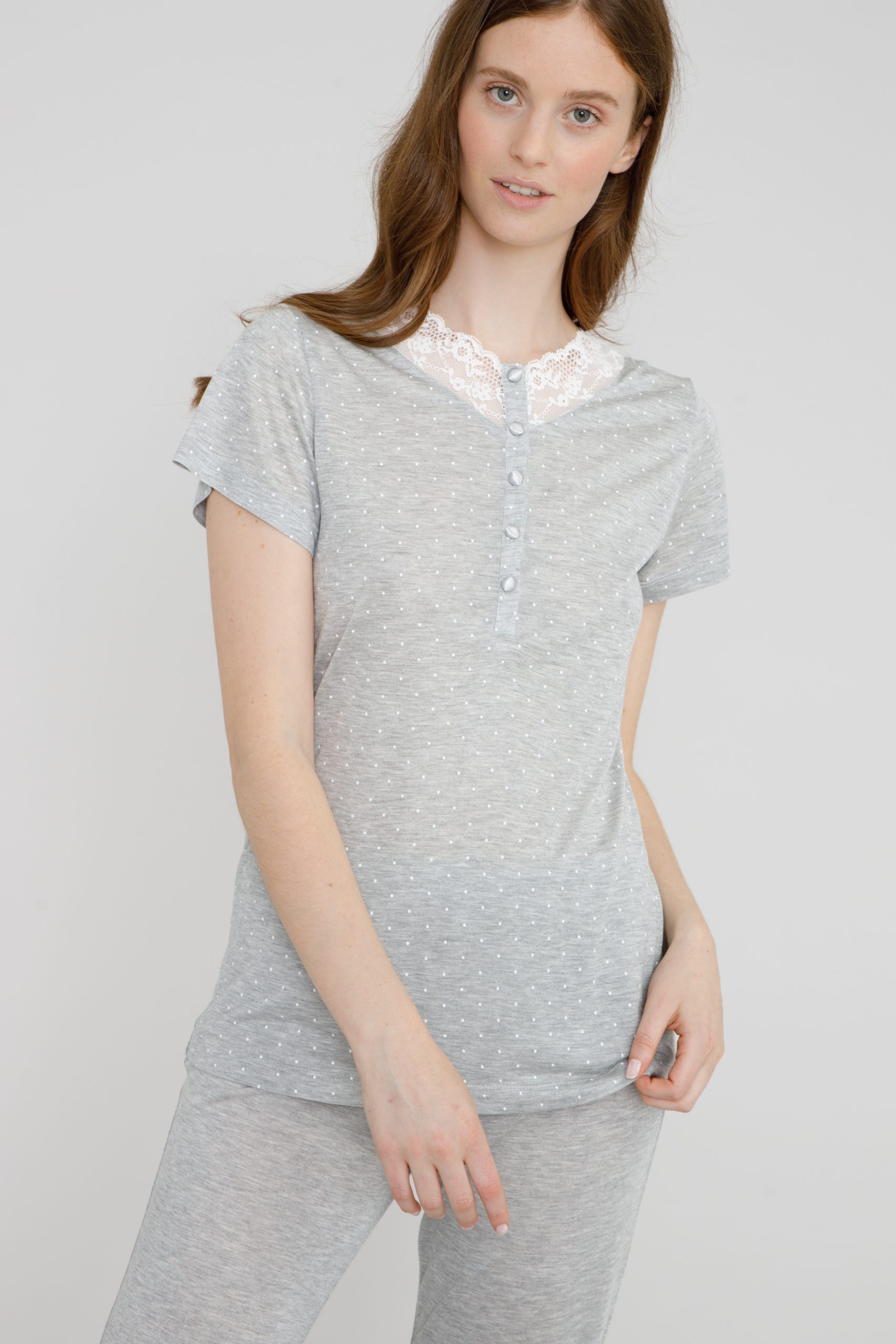 Με κοντό μανίκι, κουμπιά και λεπτομέρεια με δαντέλα για παιχνιδιάρικο look.