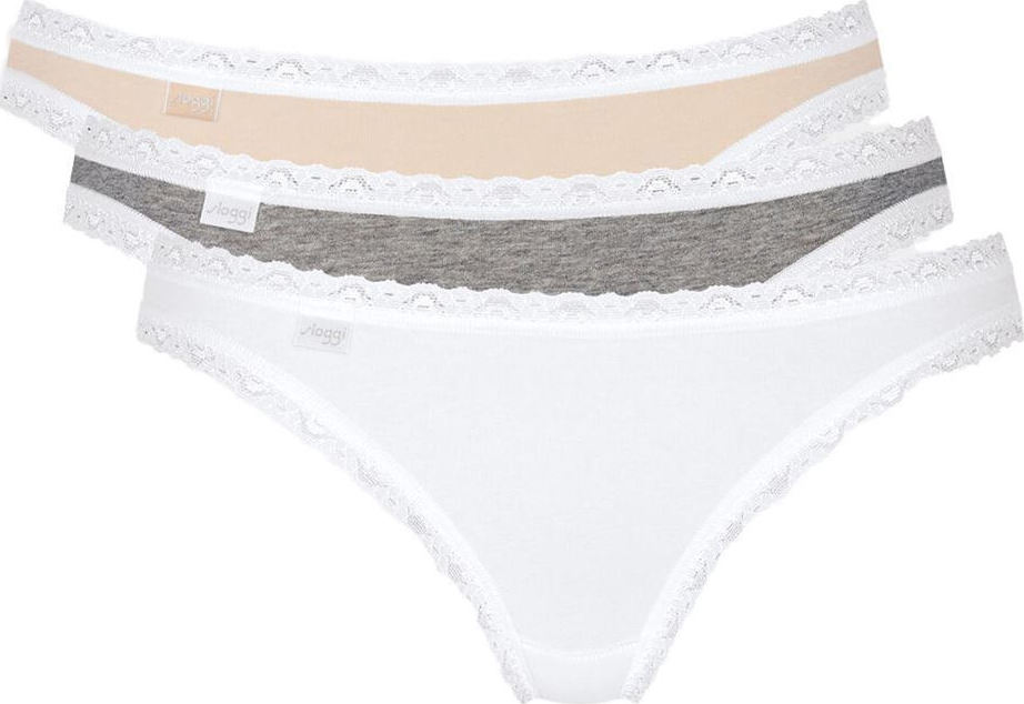 Πακέτο με 3 γυναικεία σλιπ, μεσαίο ύψος στη μέση και παρτό κόψιμο πίσω.