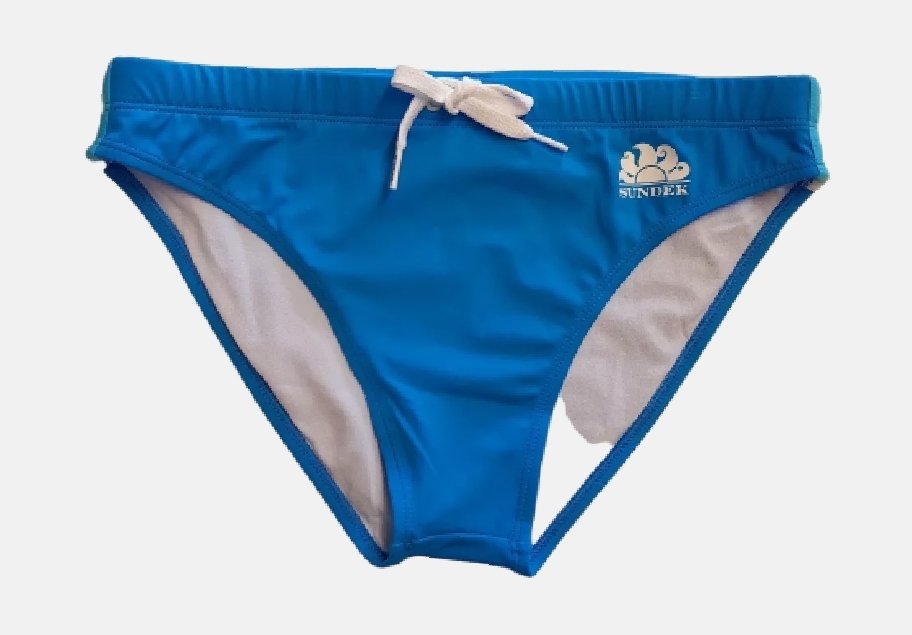 Ανδρικό μαγιο SUNDEK τύπου slip με λάστιχο και ρυθμιζόμενο κορδόνι στη μέση.