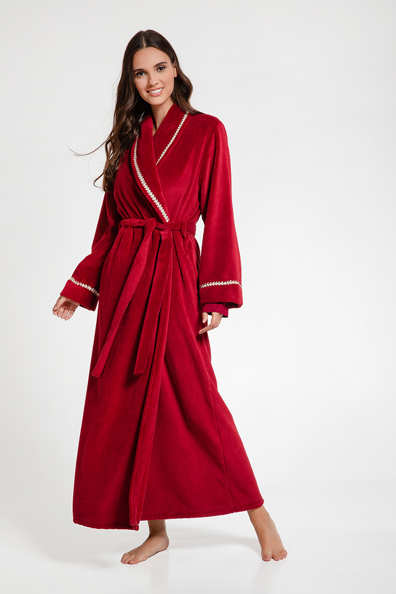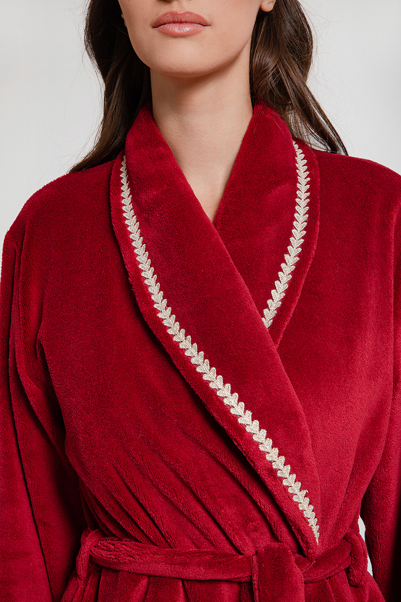 Μάξι ρόμπα μπουρνούζι φλίς σταυρωτή με λεπτομέρειες στο γιακά.