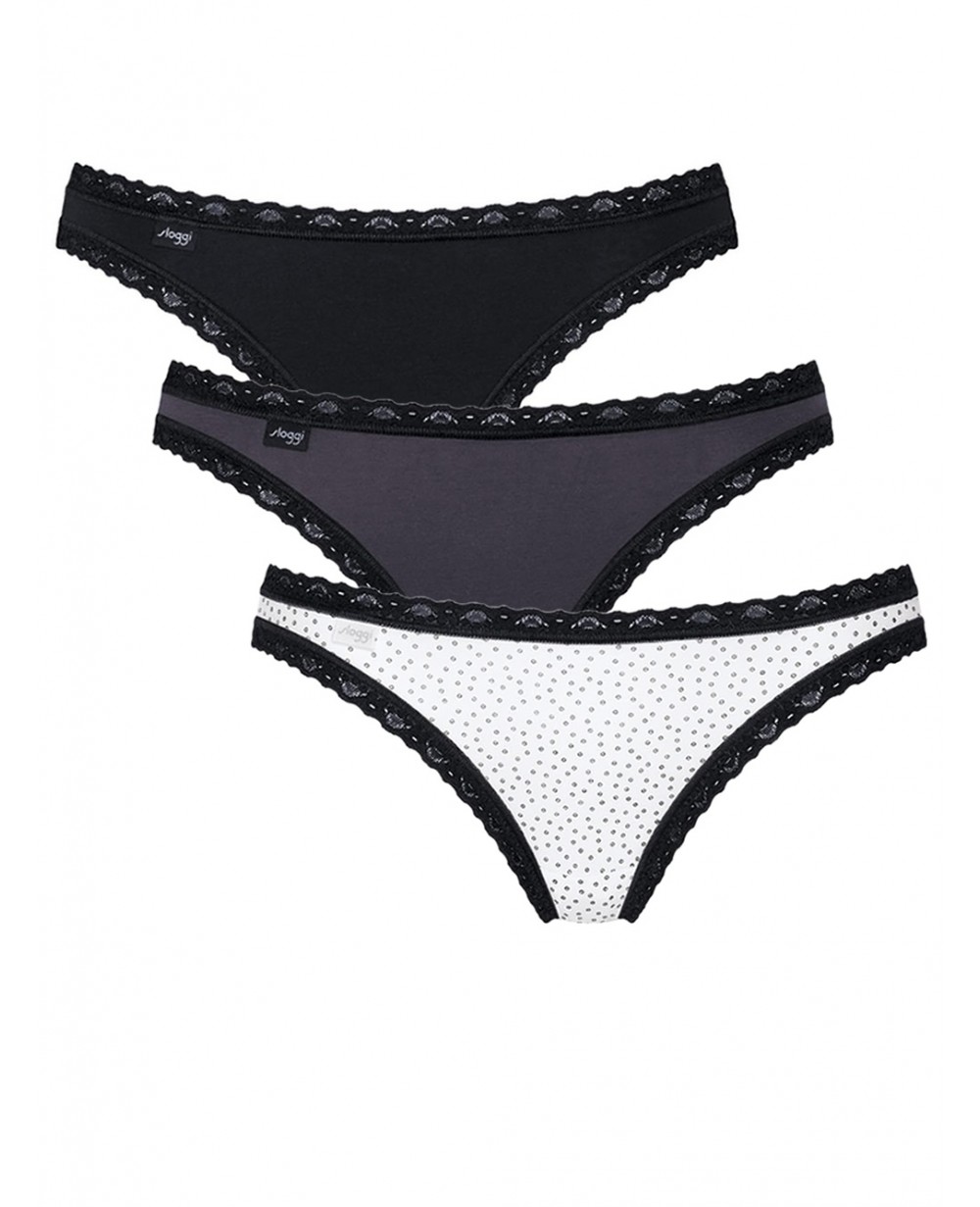 Πακέτο με 3 γυναικεία σλιπ, μεσαίο ύψος στη μέση και παρτό κόψιμο πίσω.